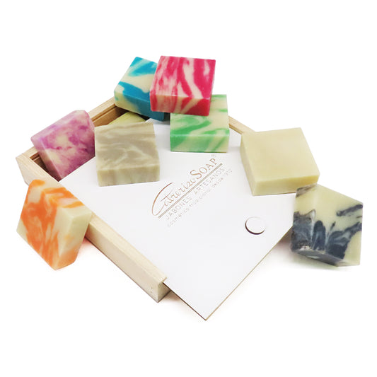 9 Jabones Artesanales para regalar 80 gr. - Caja de madera con Jabones Naturales Artesanos