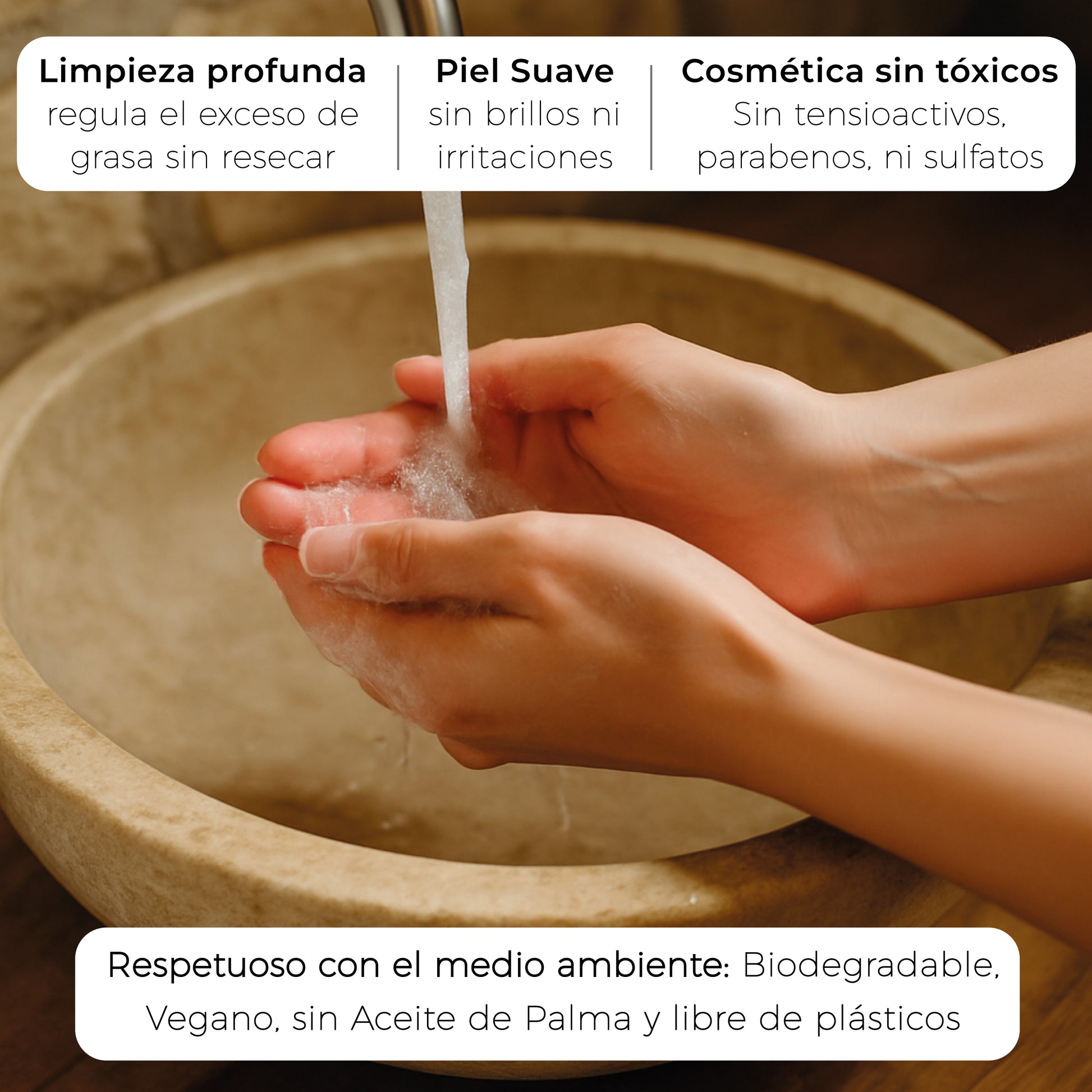 - ELABORADO A MANO EN ESPAÑA MEDIANTE SAPONIFICACIÓN EN FRÍO – VEGANO Y SIN QUÍMICOS: Elaborado artesanalmente con ingredientes naturales y sostenibles. Sin parabenos, sin sulfatos, sin perfumes y no testado en animales. Respetuoso con la piel y con el medio ambiente.